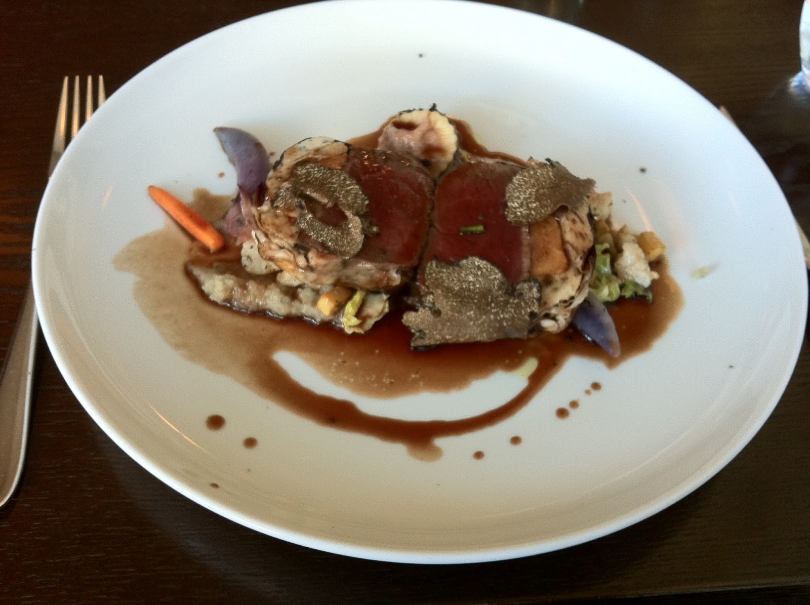 For my entree I decided to have what I thought be the richest tasting dish on the menu, venison wrapped in foie gras and if this dish wasn't rich enough, they shaved a black truffle on top it!
