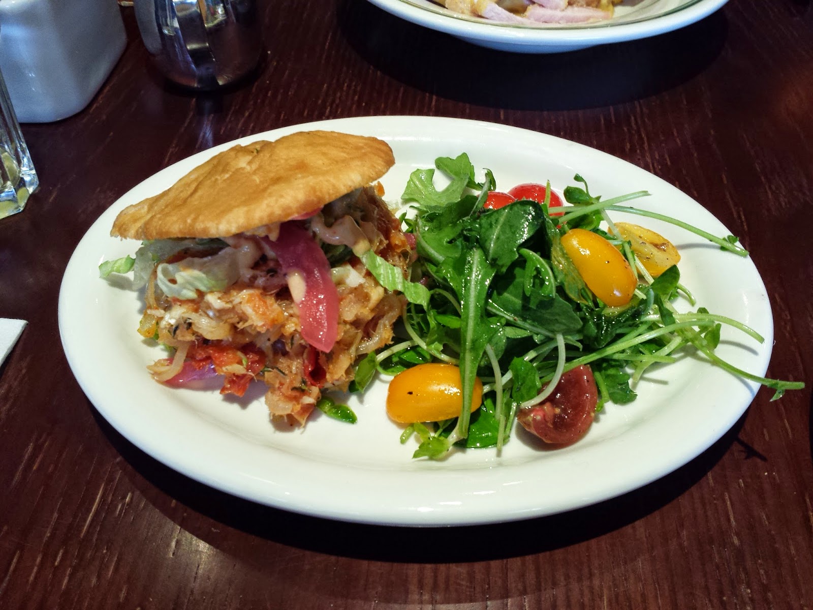 Bake, for those that don't know, is a Caribbean style fried bread. The bread surrounding the precious filling was light, airy and crispy on the outside. The filling was seasoned salted cod, slaw and picked onions. The fish was prepared beautifully which harmoniously paired with the slaw and pickles. This was definitely the dish that stole the show for our brunch.